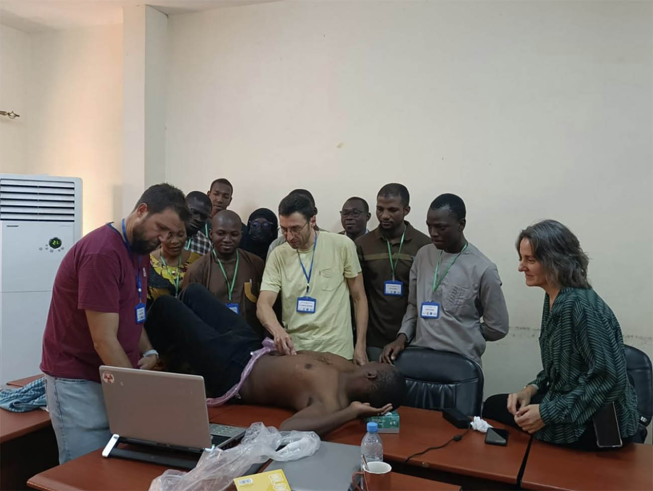 El objetivo de esta misión ha sido la puesta en marcha de actividades de cooperación técnica en el ámbito de la salud y el intercambio de conocimientos con el personal sanitario de Mali. Para ello se contó con la colaboración de seis experto/as médico/as españole/as: la Dra. Ana Pastor, neurocirujana; los anestesistas Dra. Marta Bernardino y Dr. Luis Olmedilla; los intensivistas Dr. Samuel Fernández y Dr. Ignacio Pellín, y, por último, el cirujano Dr. Fernando Turégano. Estos expertos impartieron dos cursos en Atención al paciente politraumatizado. En paralelo a esta formación, también realizaron otros cursos más breves dirigidos a residentes: Introducción a la ecografía cardiopulmonar transtorácica en adultos; Movilización de pacientes politraumatizados y Exploración neurológica según los principios de la American Spinal Injury Associtation. En total, han participado en estas formaciones 14 médicos especialistas y 47 residentes.