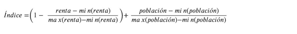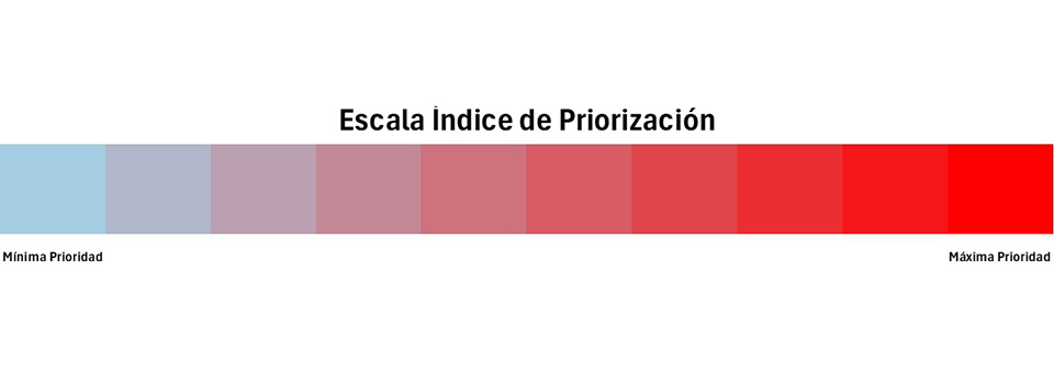 El índice de priorización ha sido desarrollado basado en criterios socioeconómicos y demográficos a nivel de sección censal. Se emplearon dos indicadores obtenidos del Instituto Nacional de Estadística: Renta mediana equivalente, como proxy del nivel socioeconómico; y población menor de 19 años residente, como medida de la magnitud de la población infantil. Para garantizar su compatibilidad, ambas variables fueron normalizadas mediante el método de mínimos-máximos, cuya validez para la identificación de desigualdades es recogida en la literatura científica e institucional.